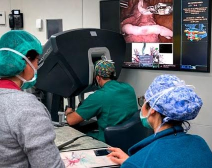 Un ejemplo claro es la cirugía de resección de tumor pulmonar realizada con el robot Da Vinci, donde la planificación quirúrgica acompaña al cirujano directamente dentro de la consola del robot, funcionando como un auténtico GPS quirúrgico durante toda la intervención.